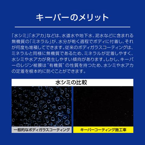・フレッシュキーパーは、汚れの密着を防ぐ独特な防汚能力を持ち、ホコリが降り積もっても塗装表面には密着せず、自然の雨が降れば元々持っている撥水力で、雨と一緒に汚れが流れ落ち、まるで洗車をしたようにキレイになります。